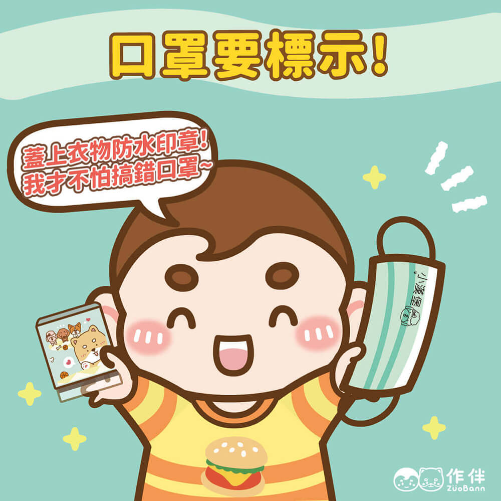 直接在口罩上蓋上姓名,可以讓小朋友馬上認出自己的口罩。