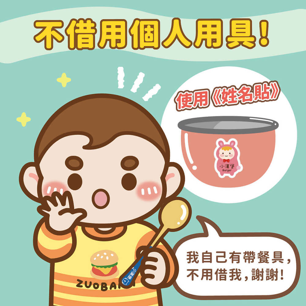 提醒孩子不要借同學、跟同學借用個人用品,減少傳染的風險!