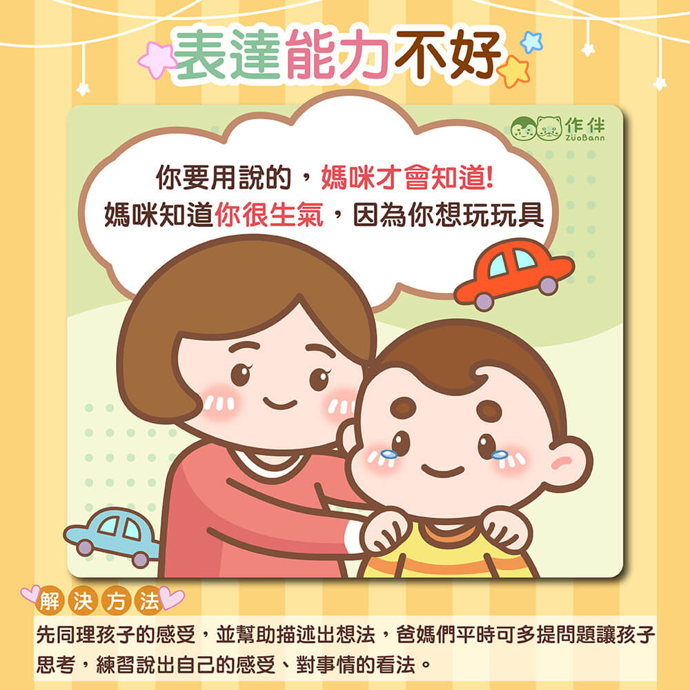 而當父母不明白孩子的意思,孩子就會更著急的用發脾氣來做回應,