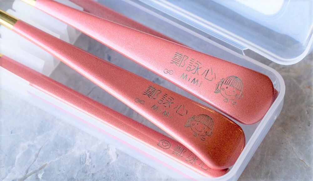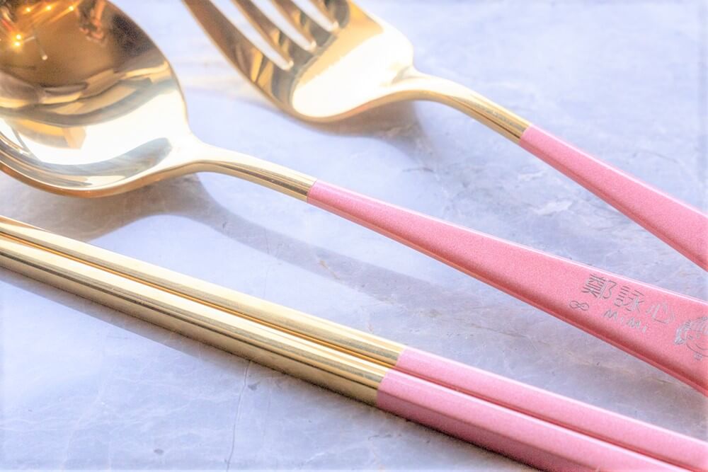 更不用擔心衛生問題,尤其可以有這麼精美的客製化餐具組,