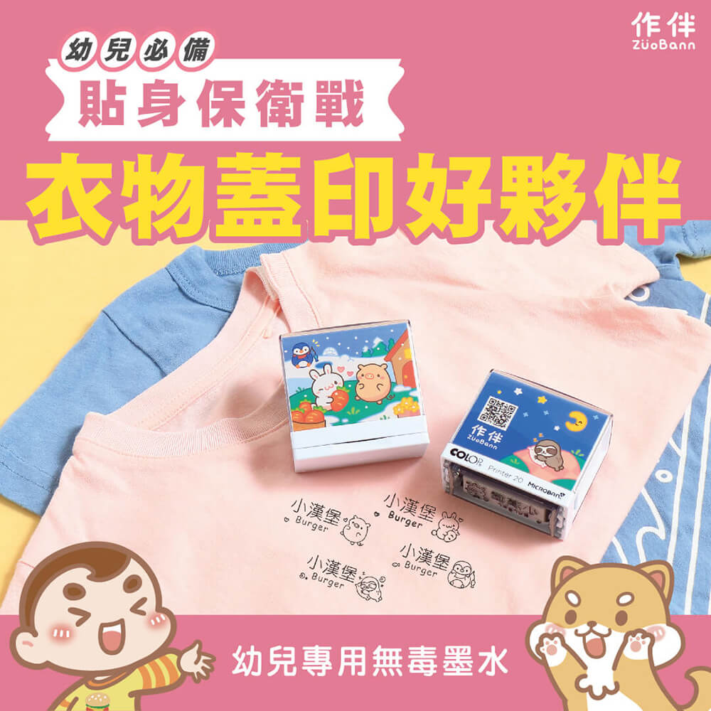 推出這款衣物防水印章,考量到孩子們在托嬰中心準備