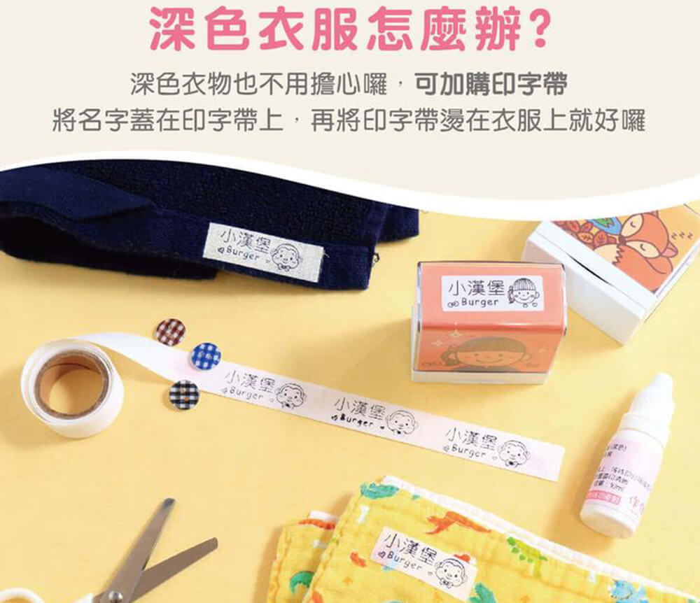 如果有了衣物印章,小朋友攜帶去學校的用品有清楚辨識~