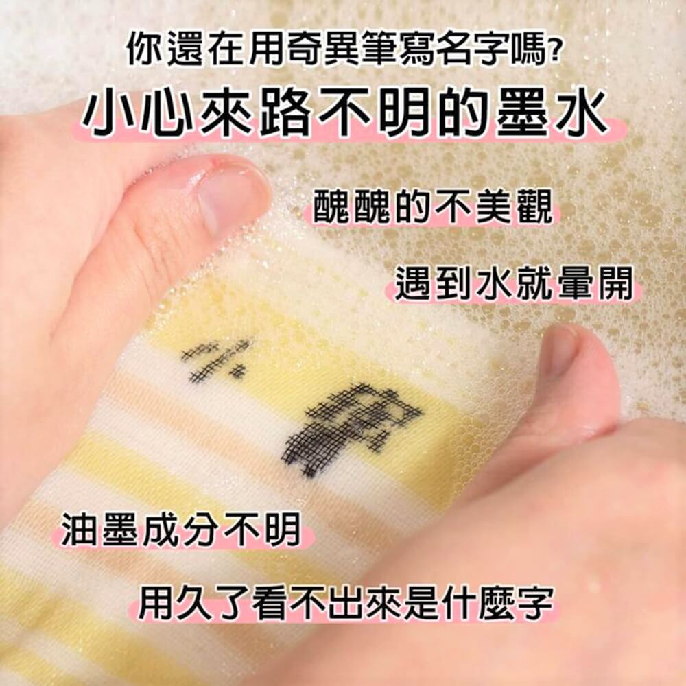 姓名貼不適合用在布料材質,奇異筆的墨水會傷害小朋友的肌膚。