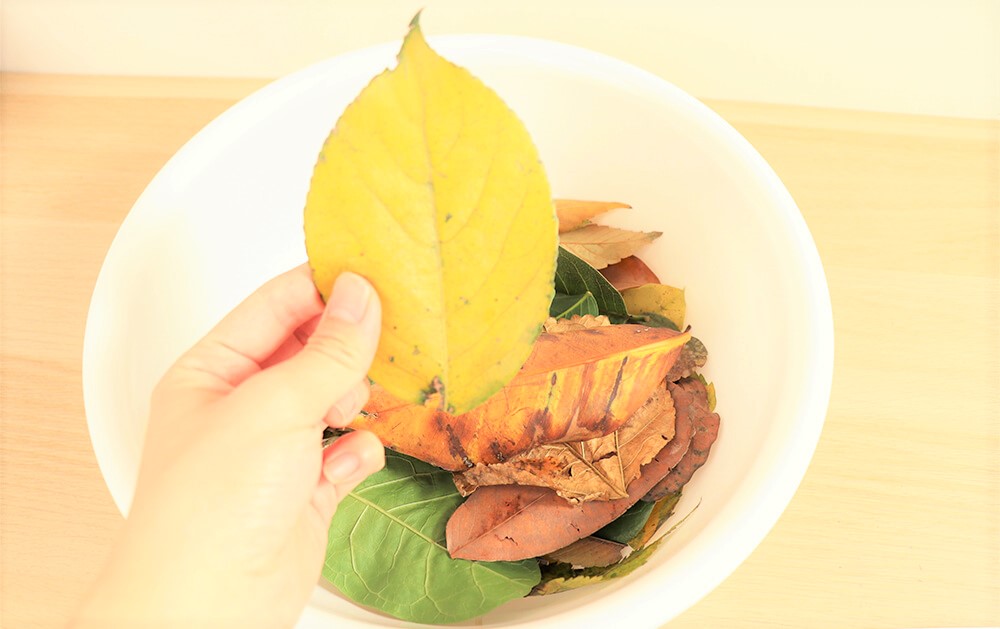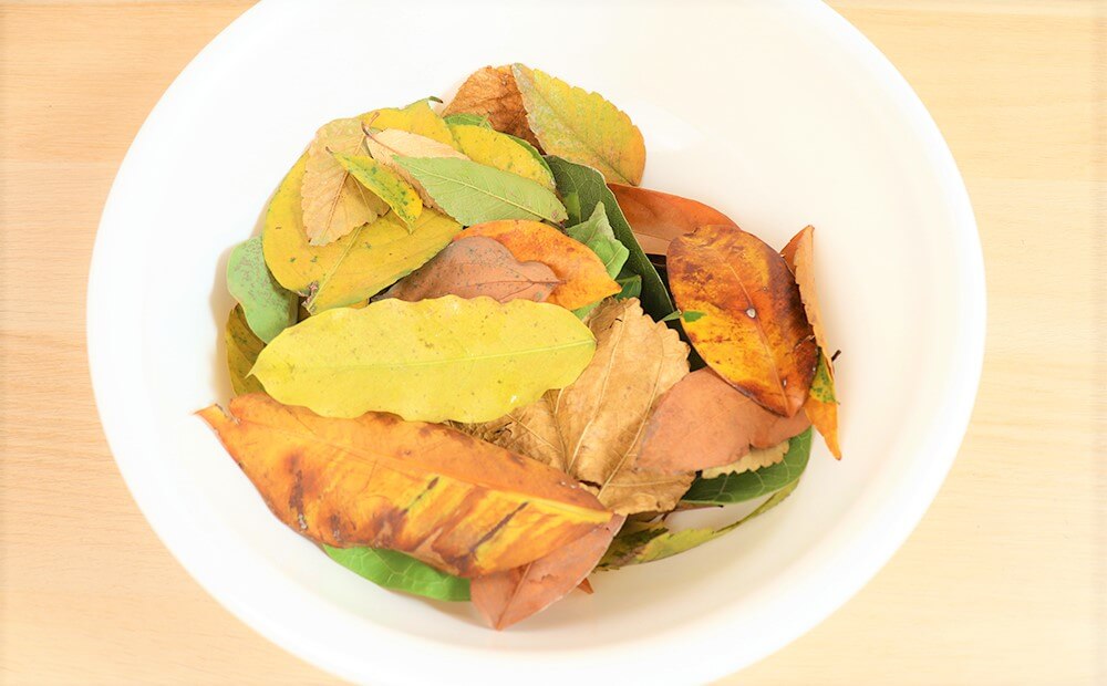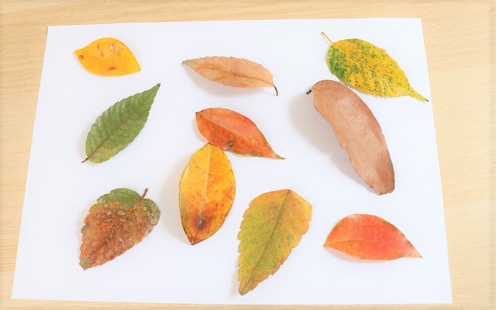 可以與孩子在路邊玩耍時,拾ㄧ些顏色、形狀不同的落葉。