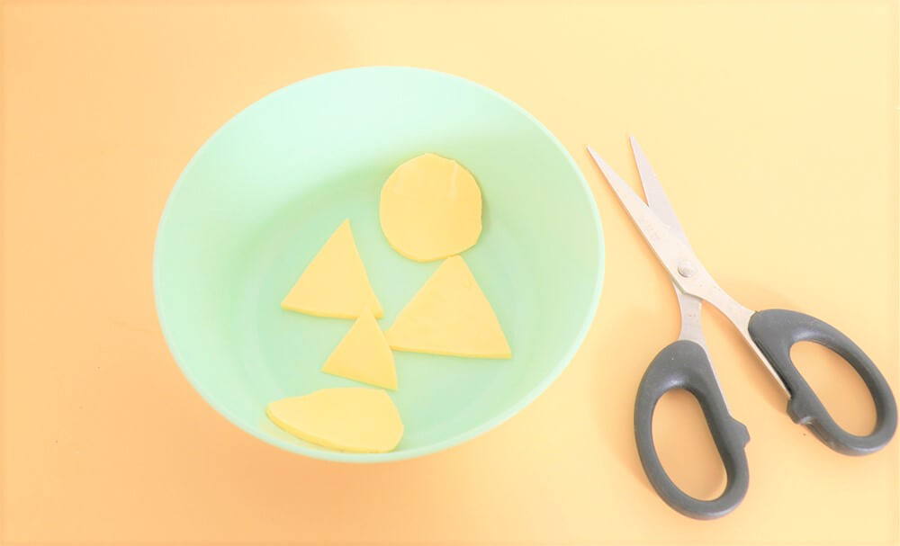 用剪刀將起司裁剪臉部配件。