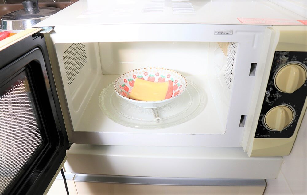 將蛋拿進微波爐以小火微波一分鐘。