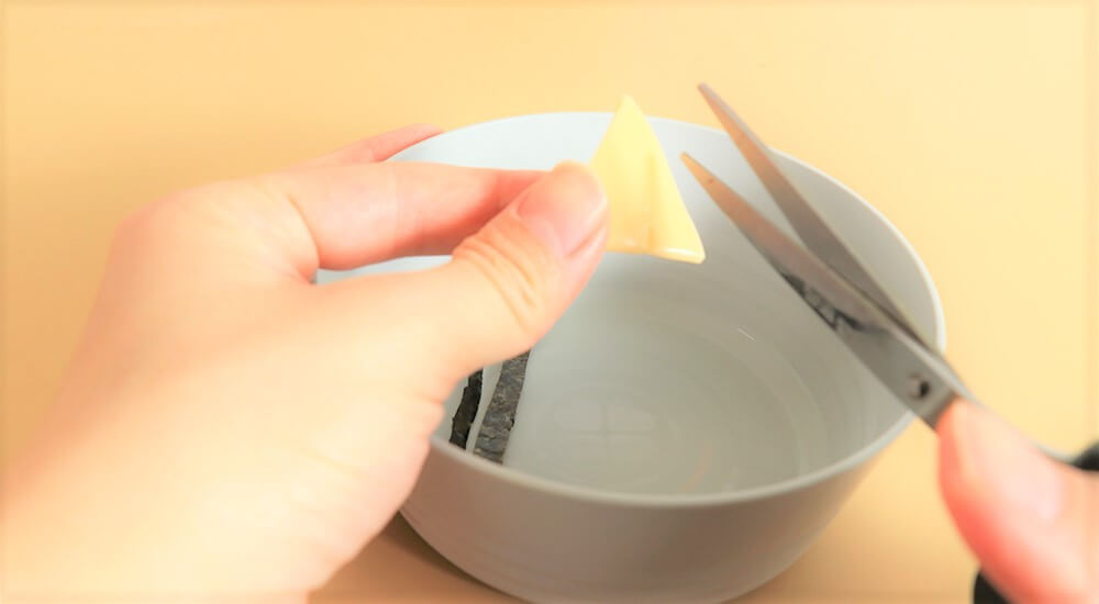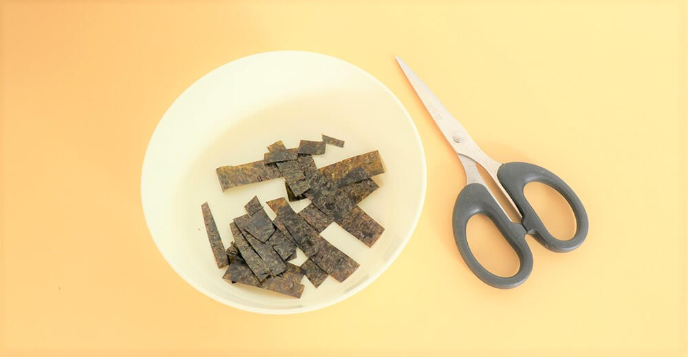 用剪刀將海苔裁剪臉部配件。