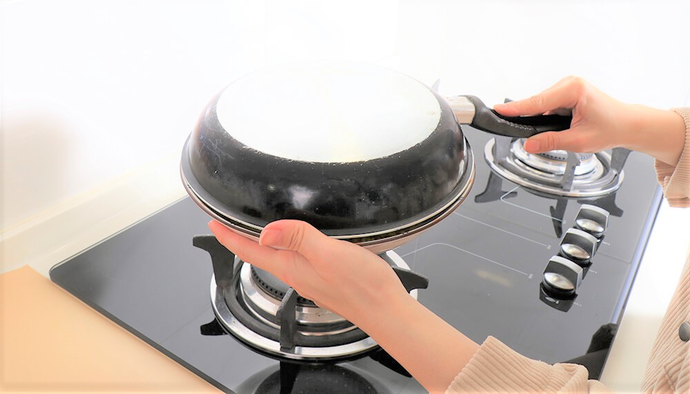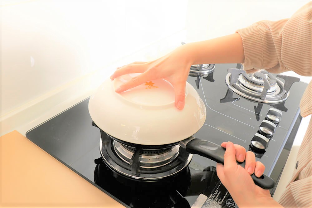 拿一個比鍋子大的盤子倒放在鍋上。
