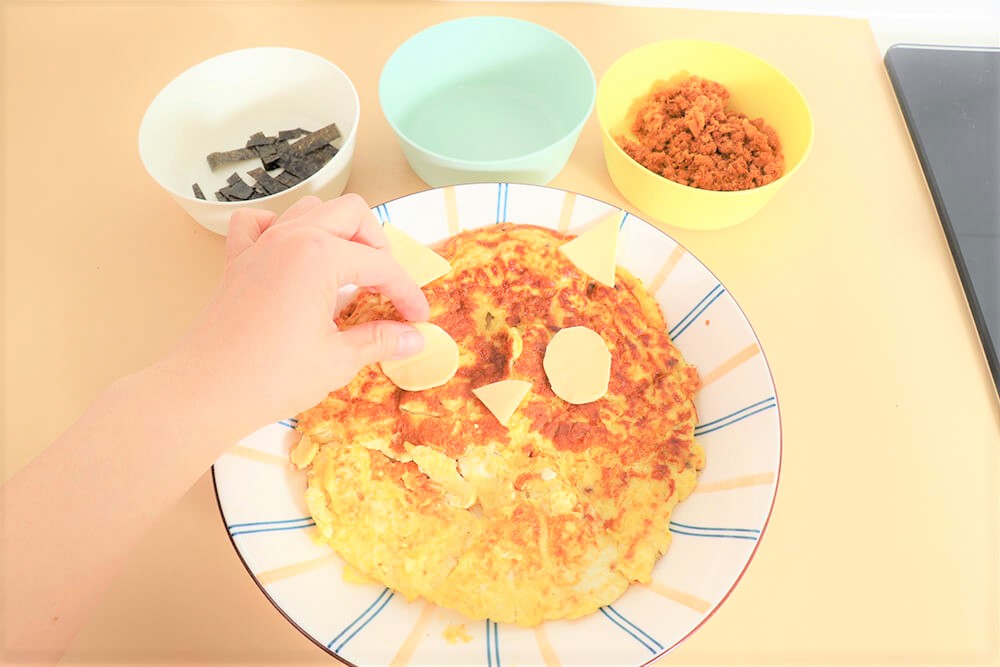 5.裁剪起司和海苔做裝飾,放上肉鬆當腮紅點綴