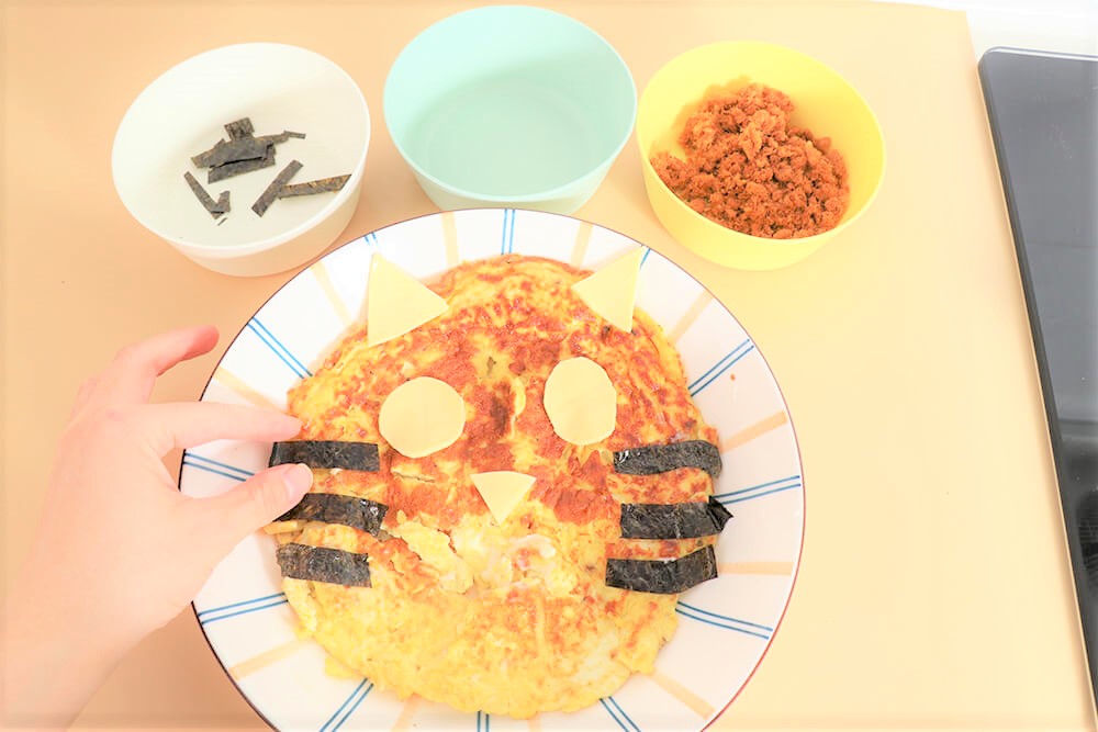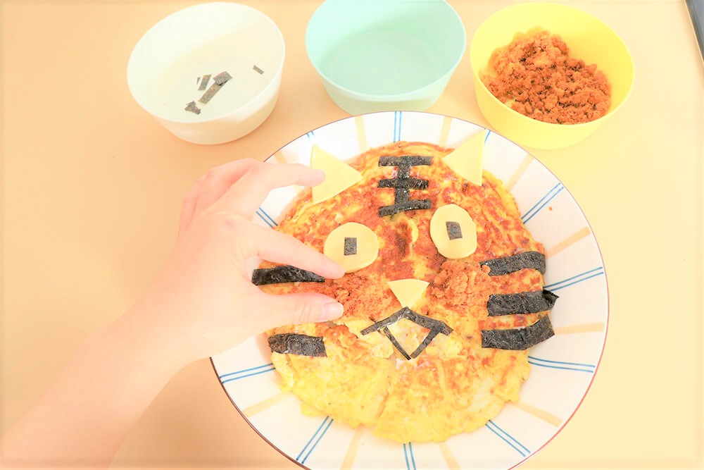 用肉鬆當作老虎的腮紅。