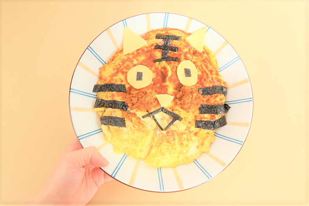 5.用海苔剪出老虎的臉部,用美乃滋黏貼就完成囉!