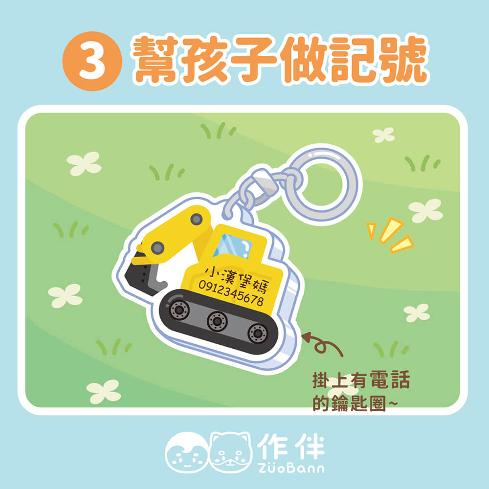 或是掛有父母聯絡方式的姓名鑰匙圈在包包、鑰匙上,