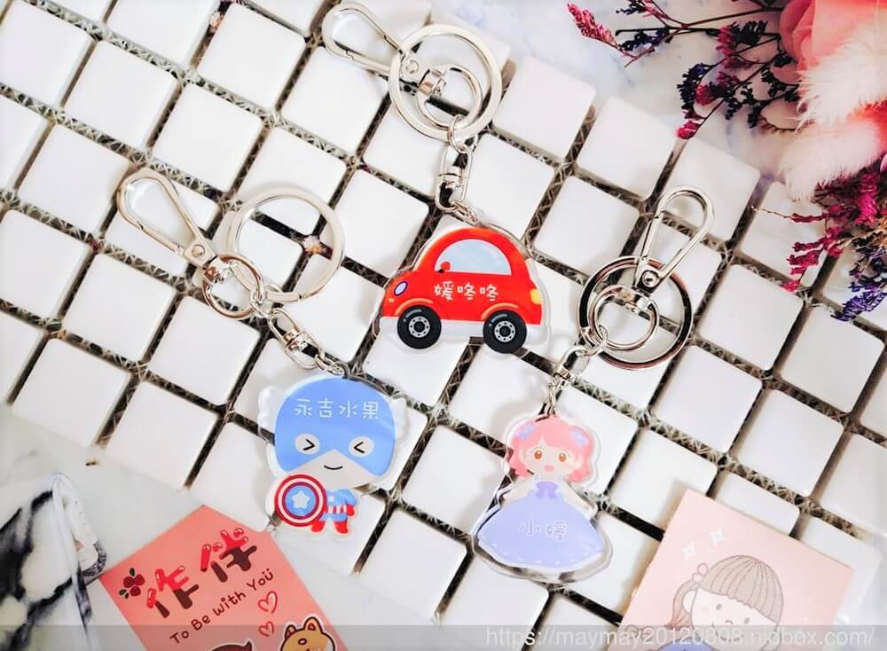 擁有多樣化手繪風格的鑰匙圈,在材質上使用4mm透明壓克力,手感厚實及雙扣環的貼心巧思,