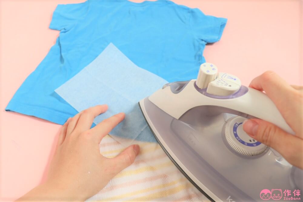3.印字帶放在衣物上,使用熨斗燙熨8~10秒。