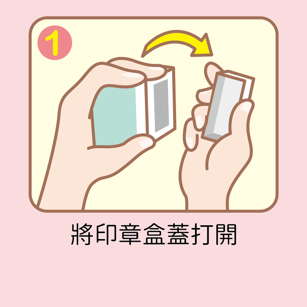 2.將印面兩側灰色部分往下壓,印面會自動回彈沾墨,即可蓋印。