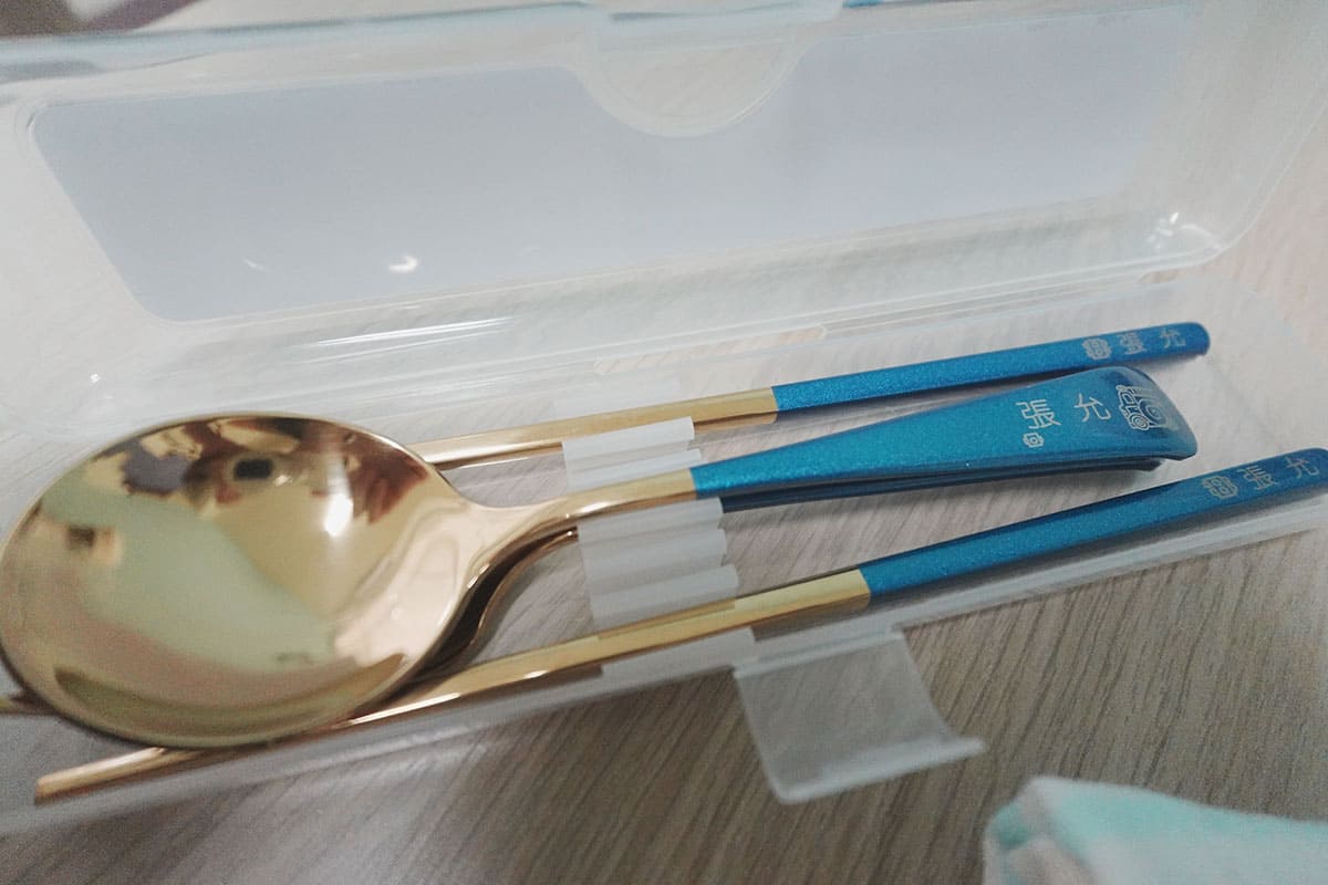 哥哥念的這間都要使用校方規定的書包餐具,所以當年我興致沖沖的幫他準備的姓名餐具就沒有用到