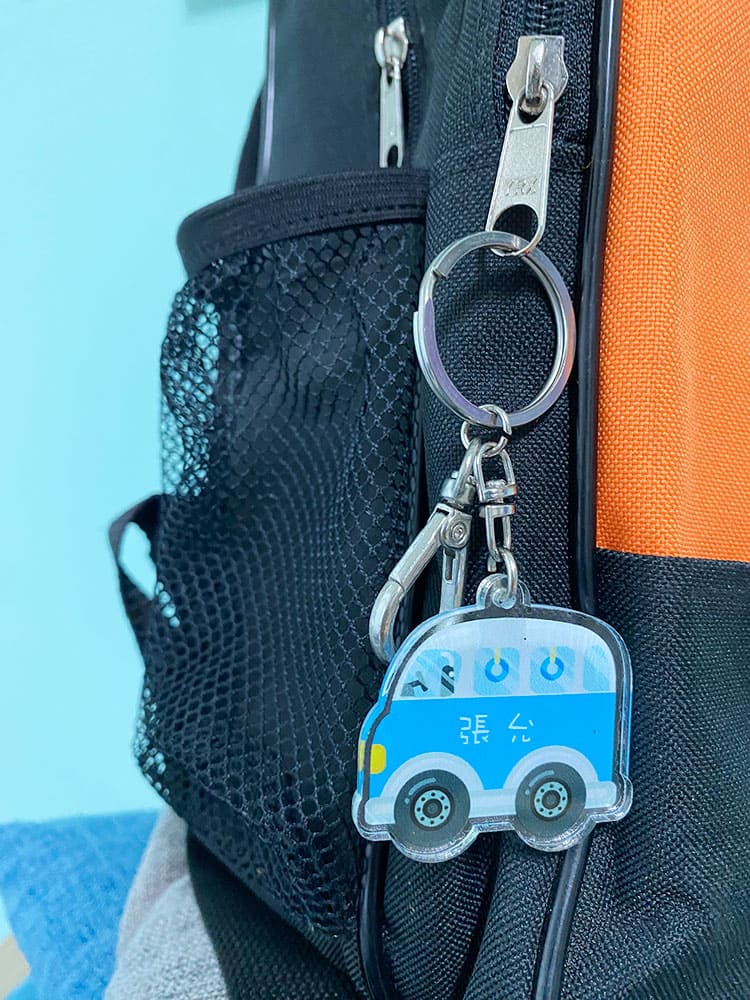 其實掛一些娃娃,或是沒有名字的東西當辨別的東西也可以,但畢竟老師每天要面對這麼多學生,書包上面還是有名字可以認對老師來說比較方便,所以真的建議大家都可以做一個鑰匙圈掛在包包上唷!