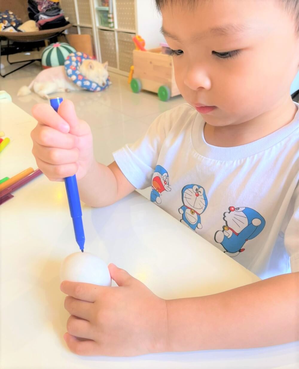 拿出色筆在雞蛋上面彩繪,看起來繽紛又可愛🎨