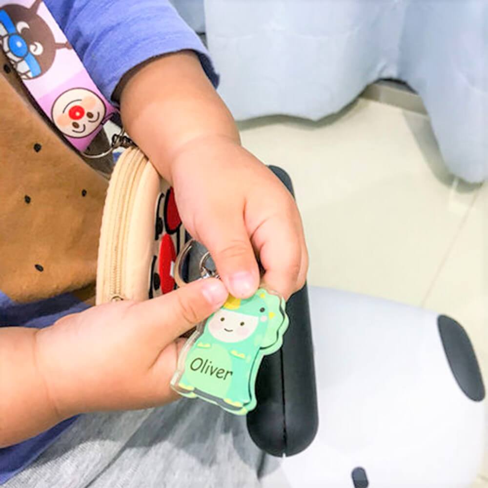 可以幫孩子做一個姓名鑰匙圈,讓他們挑喜歡的圖案,