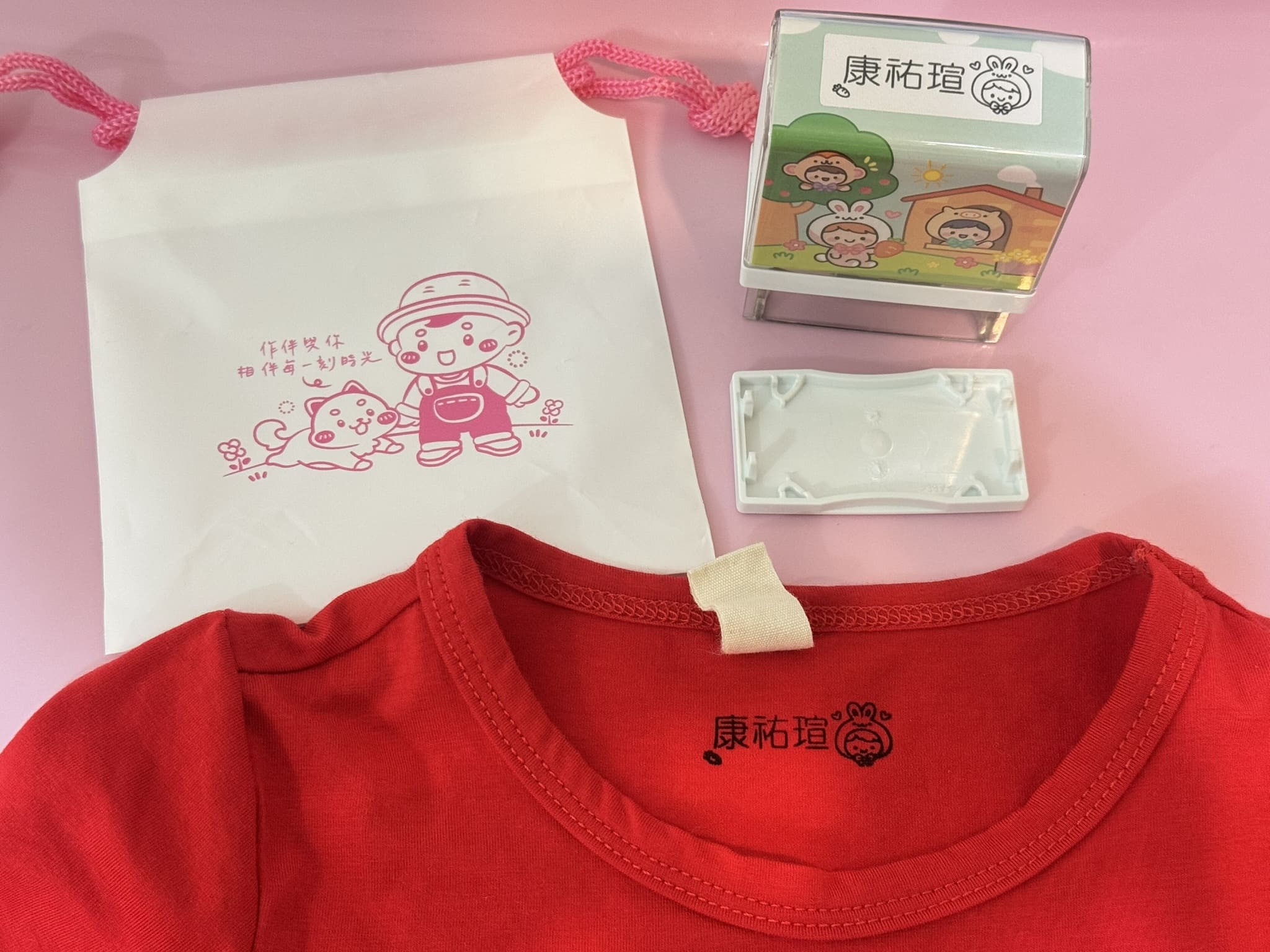 作伴的衣物印章,採用德國Dermatest五星級安全認證幼兒專用無毒墨水,