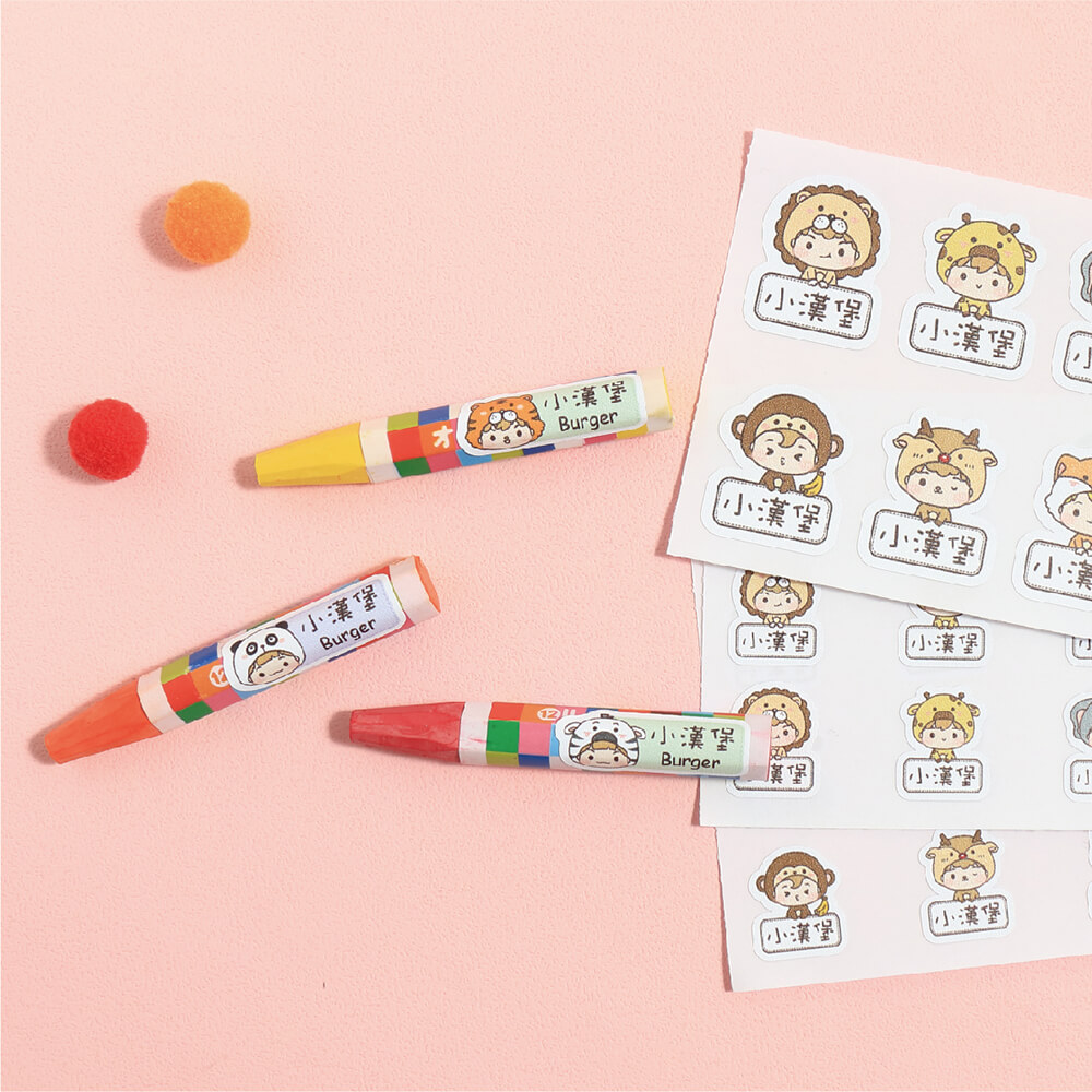 而市售姓名貼大多為底色配上圖案或卡通造型,看起來比較沒有辨識度,