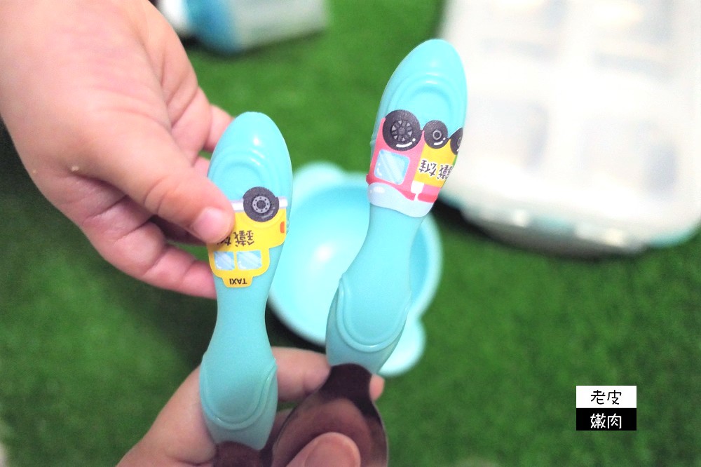 為了讓寶寶方便拿取,寶寶餐具-叉子跟湯匙上都會刻意作凹凸圖案。