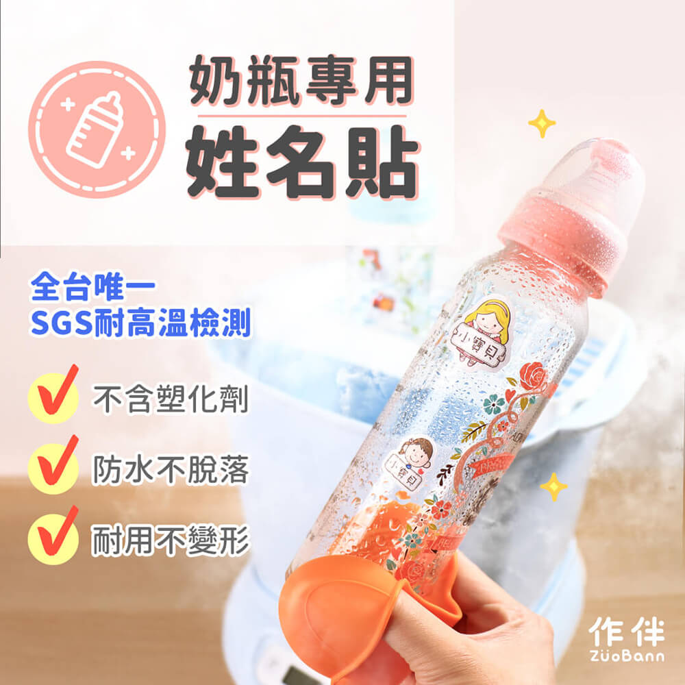 作伴推出的奶瓶專用姓名貼,是特別為媽咪們托嬰準備做設計的,