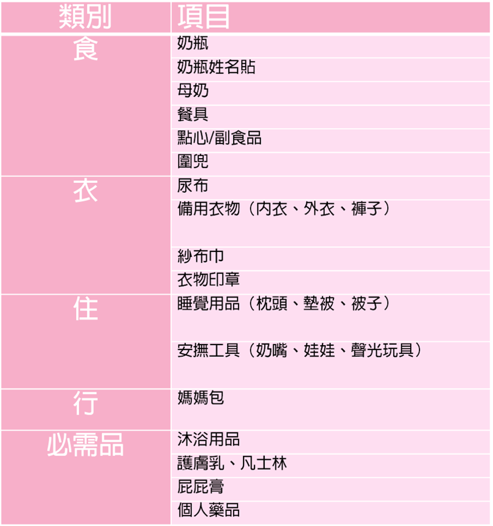 小編介紹完畢啦~ 最後幫大家把托嬰用品清單統整成表格給大家看得更清楚。
