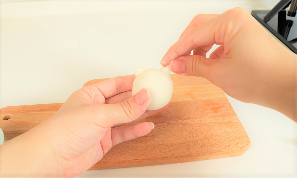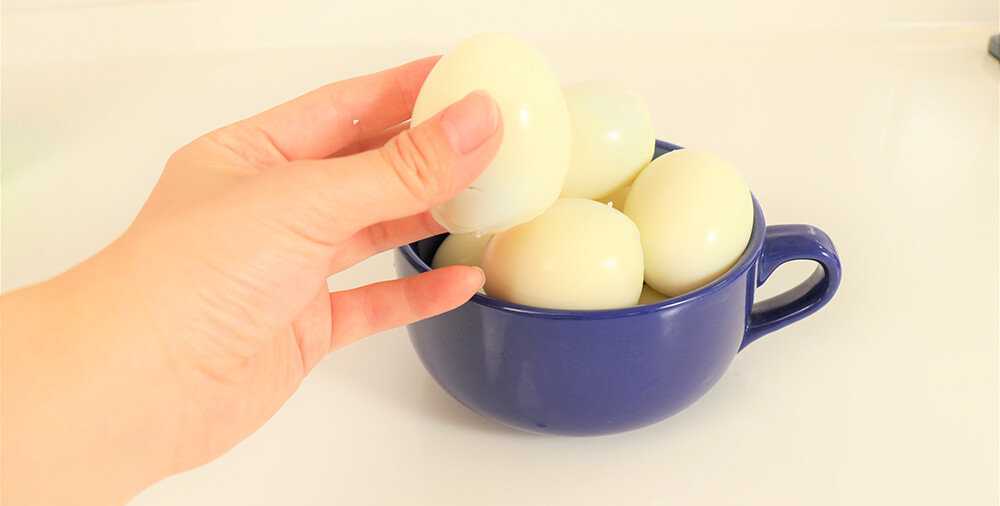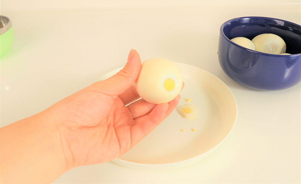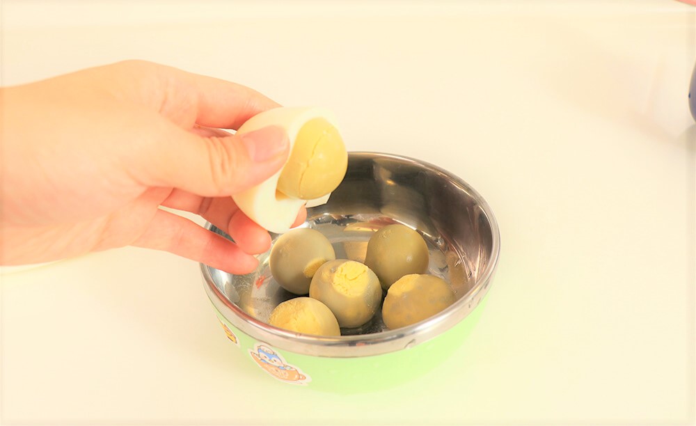 1.剝掉水煮蛋的蛋殼。
