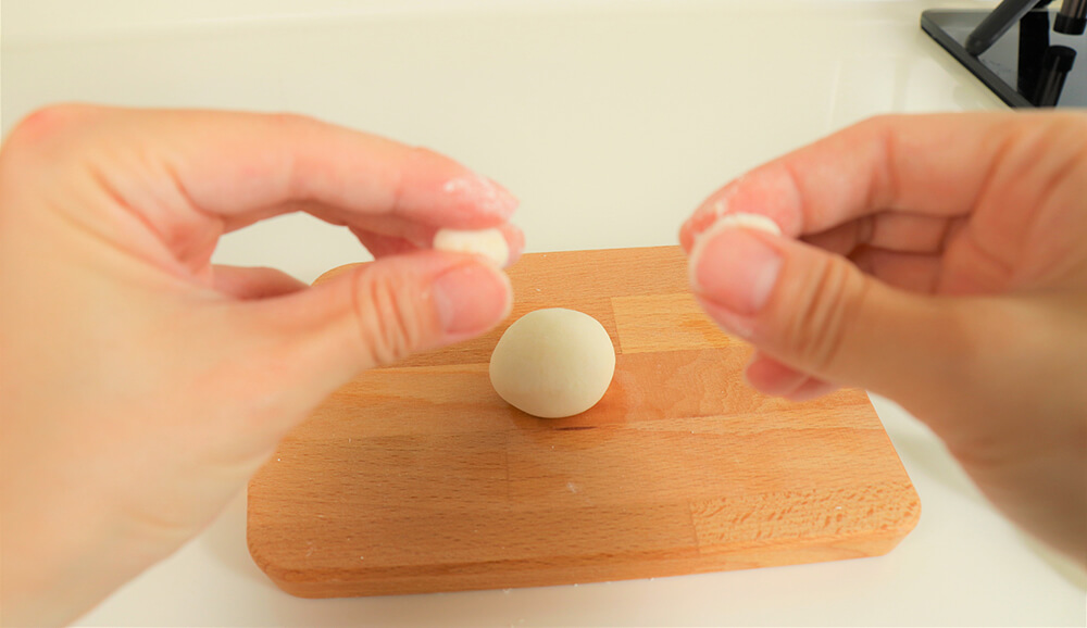 揉捏幾分鐘後,會變成粉糰。