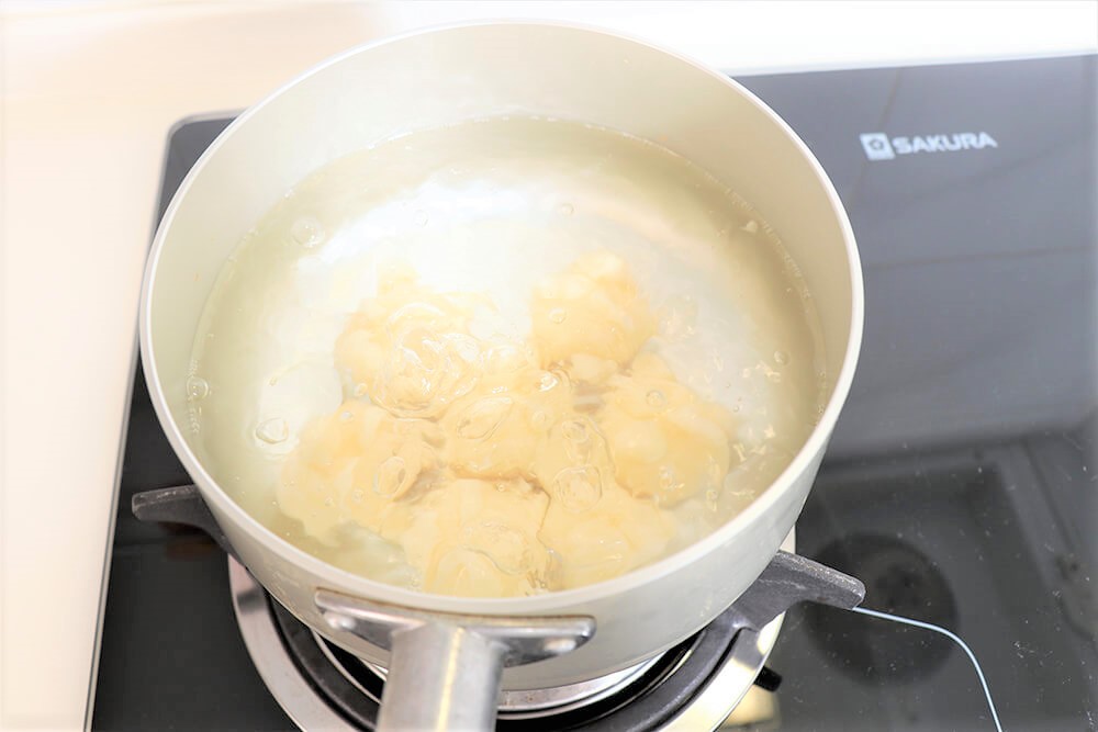 3.將糰子放至沸水中,煮至浮出水面即可。