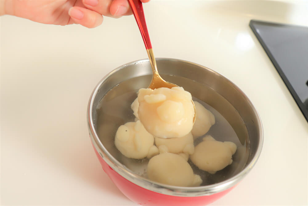 4.撈起糰子放入冰水降溫。