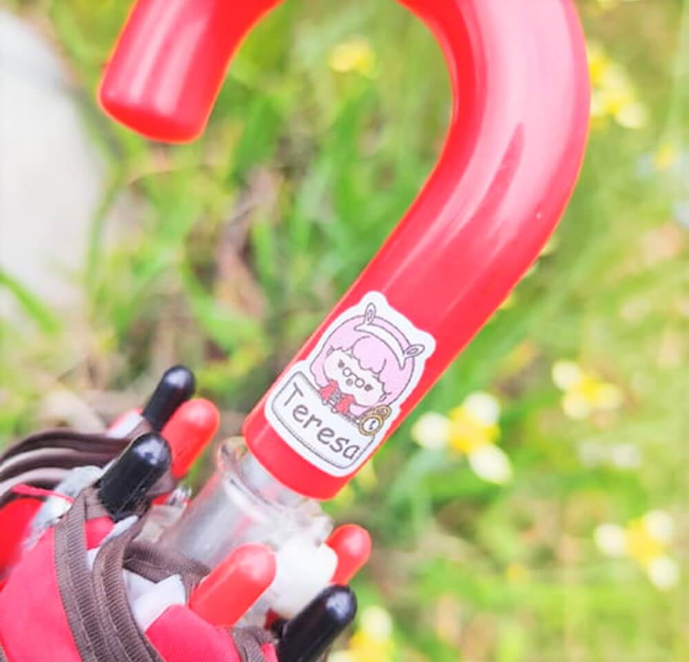 因為作伴姓名貼黏性好,貼在微曲面的地方,所以連雨傘的把手也很ok呢👌
