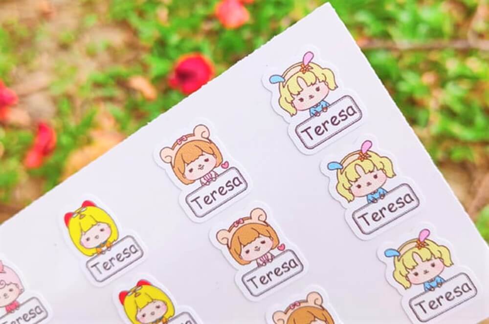 小妞趕緊在她的物品上選擇最適合圖案貼上。