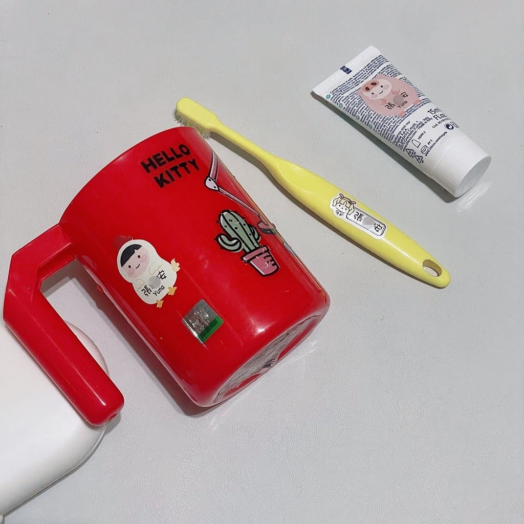 當我第一次把這些貼紙貼在萌寶的水壺、文具&牙刷上時,