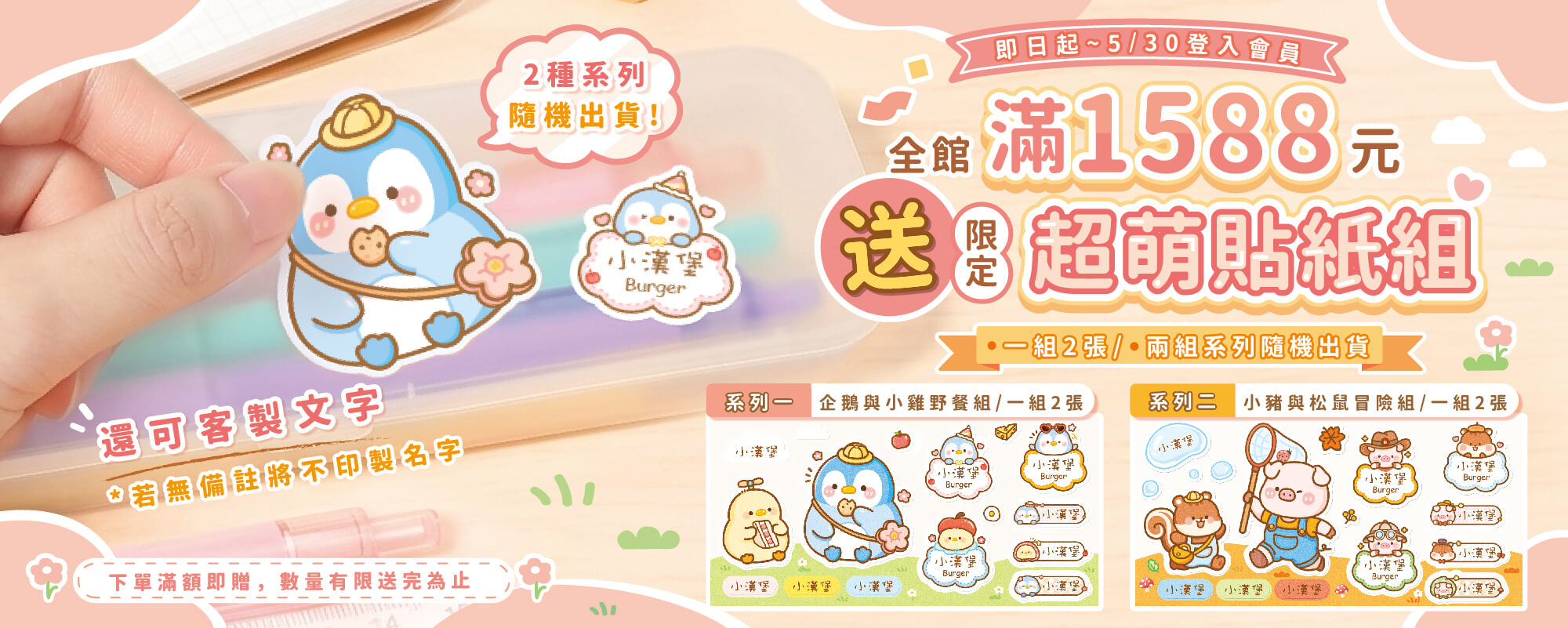 作伴親手繪製的可愛圖案搭配專屬你的名字組成各式各樣的可愛商品套餐不只價格超值還享有免運喔 商品規格防水姓名貼【可愛喵喵】綜合套餐▶ 一組高級防水姓名貼有大有小 80入【躲貓貓️】N款 ▶ 一組高級防...