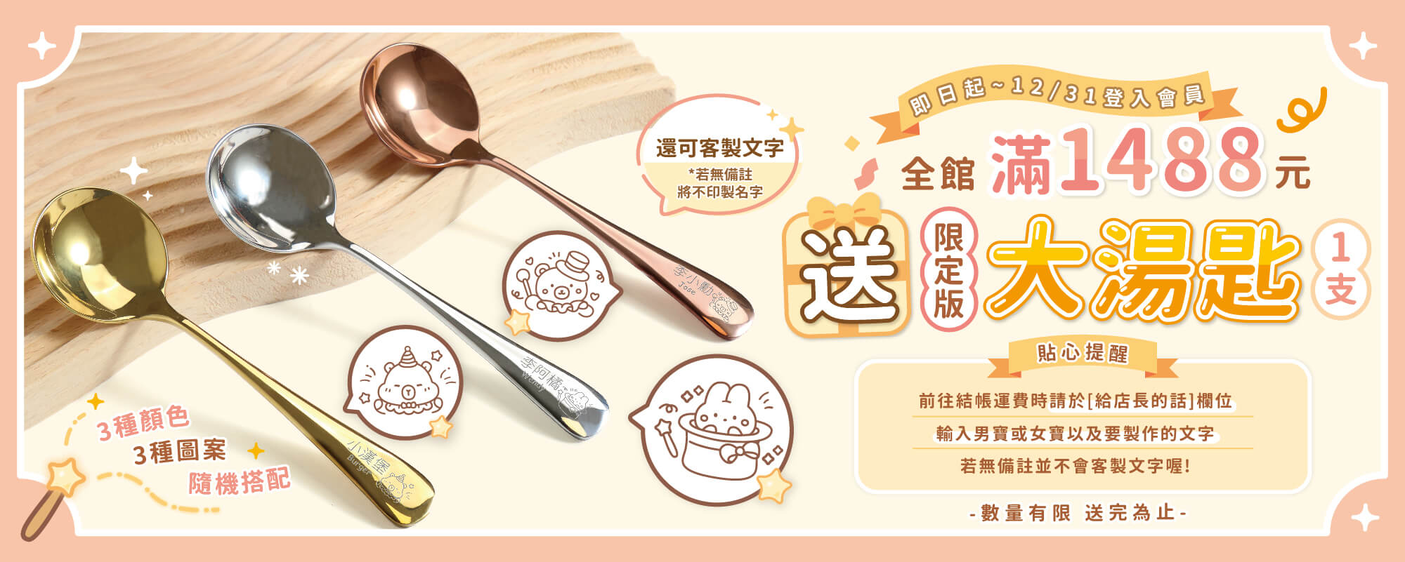 印章超值免運組【方形姓名貼+印章+專用小湯匙3入】