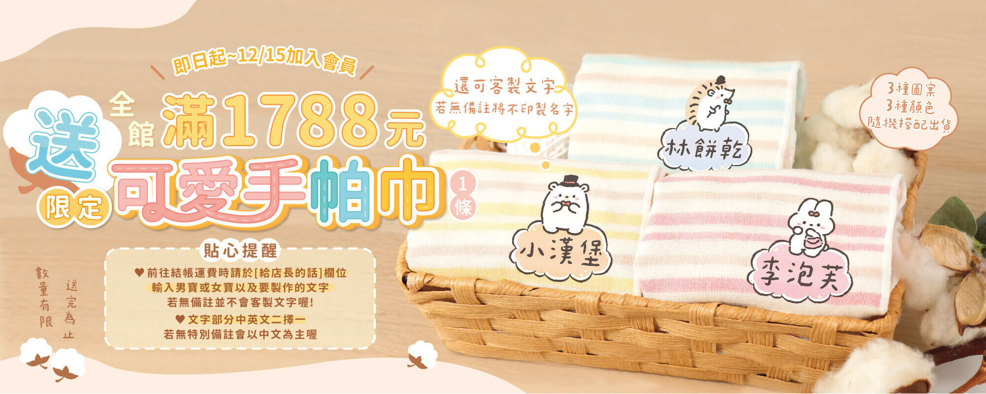 開學必備超值免運組【迷你貼+印章+鑰匙圈2入+燙印手帕巾1入+溼紙巾蓋1入】