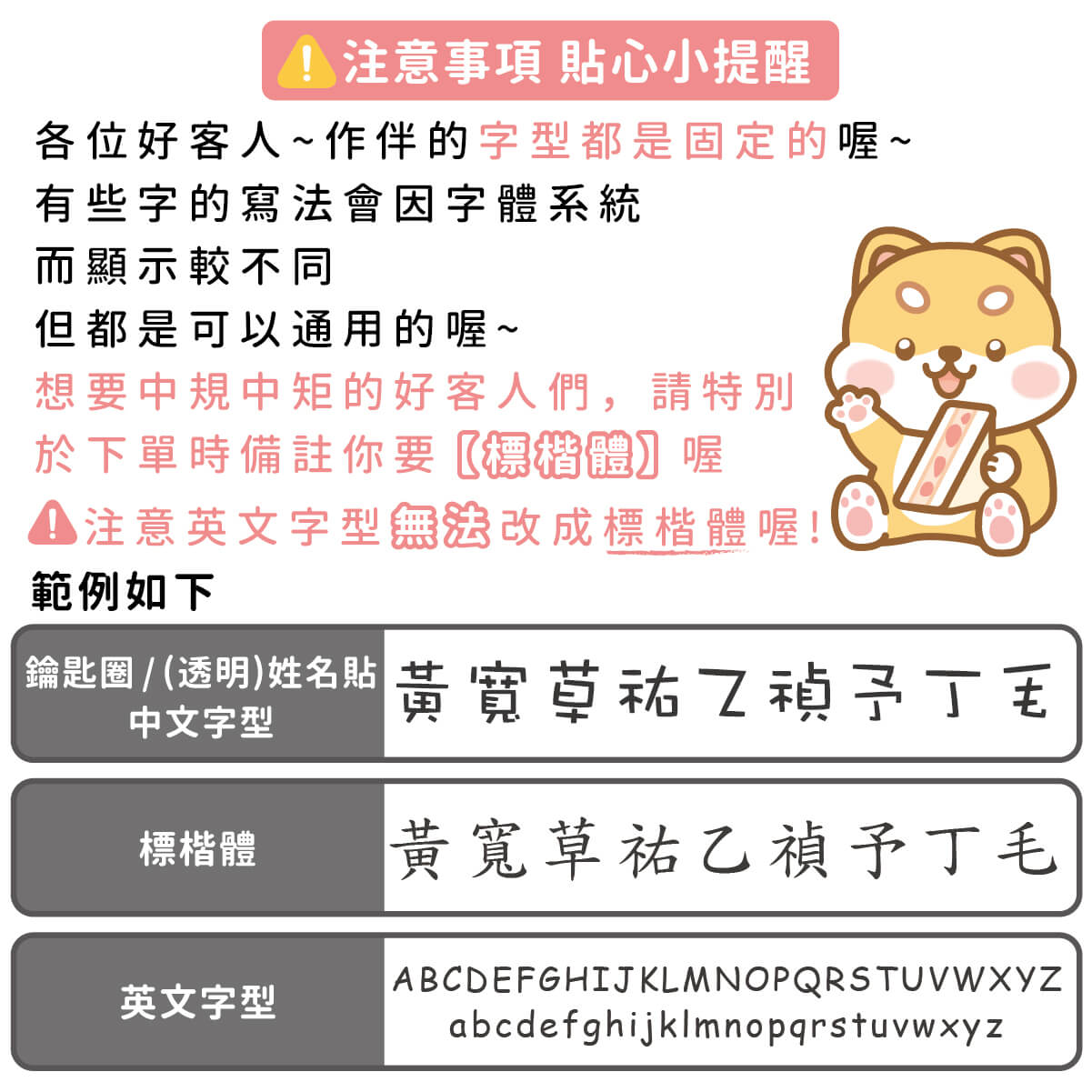▶ 字型都是固定的喔,如果想要中規中矩請備註要標楷體喔