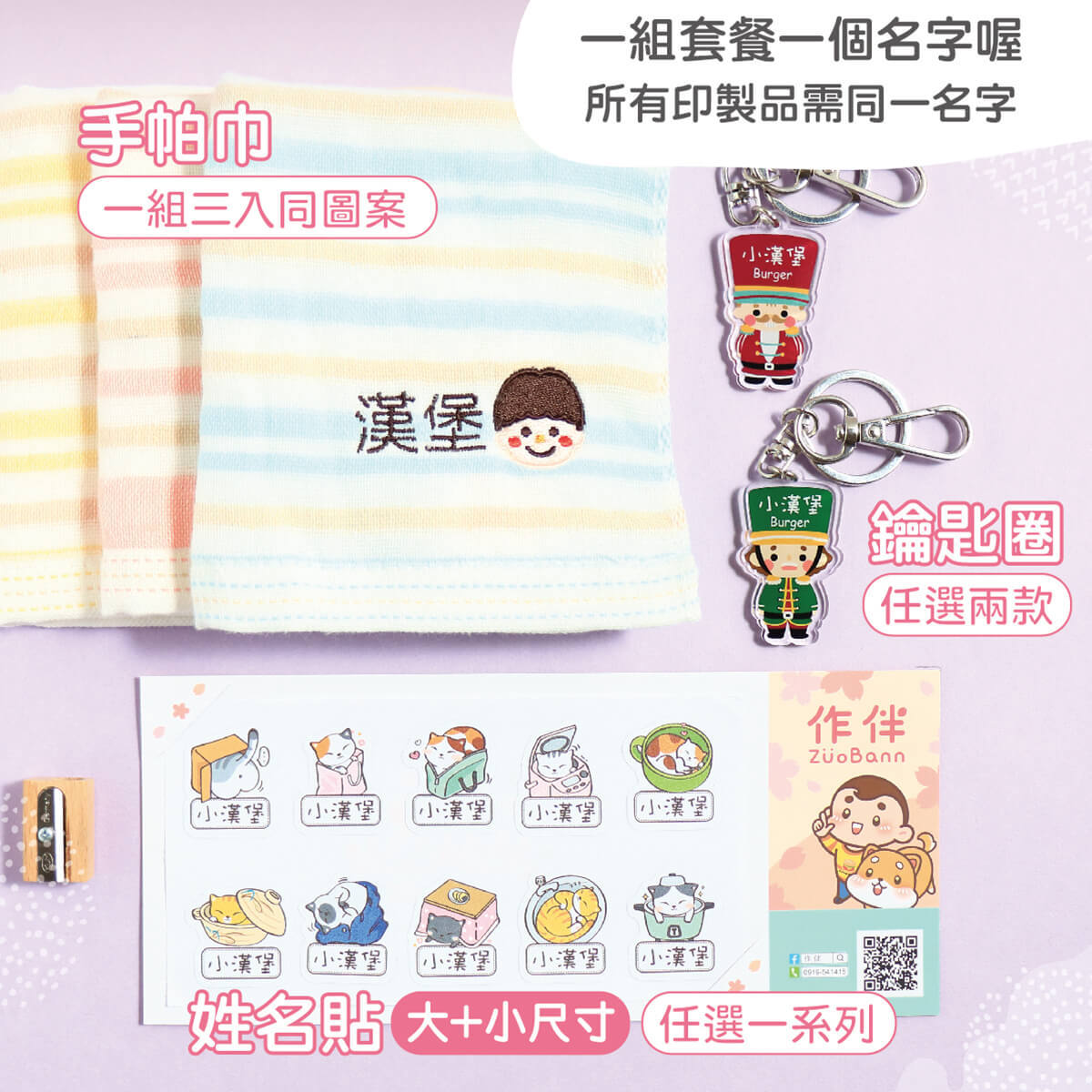 高級防水姓名貼有大有小+鑰匙圈2入+刺繡手帕巾3入