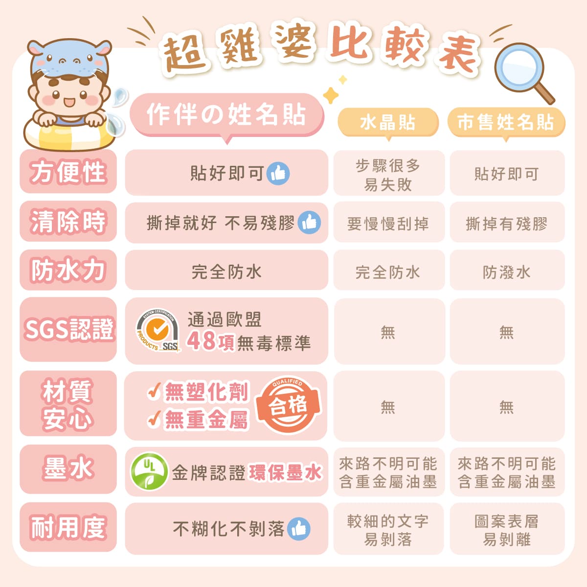 不糊化、不脫落、防水又耐用