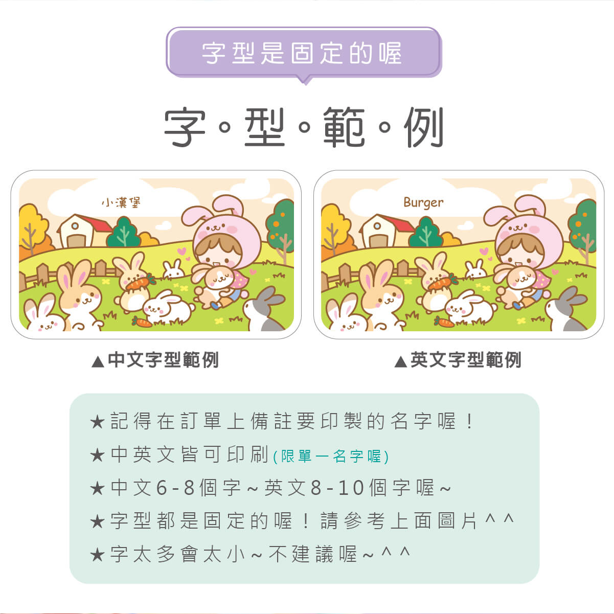 ▶ 字型都是固定的喔,如果想要中規中矩請備註要標楷體喔