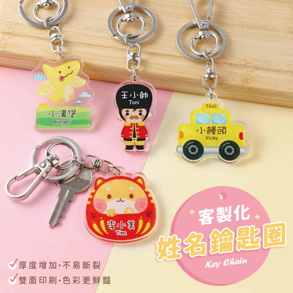 作伴姓名鑰匙圈,擁有可愛圖案,搭配專屬你的名字