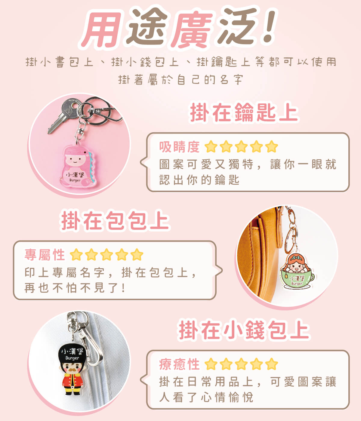 作伴姓名鑰匙圈,擁有可愛圖案,搭配專屬你的名字