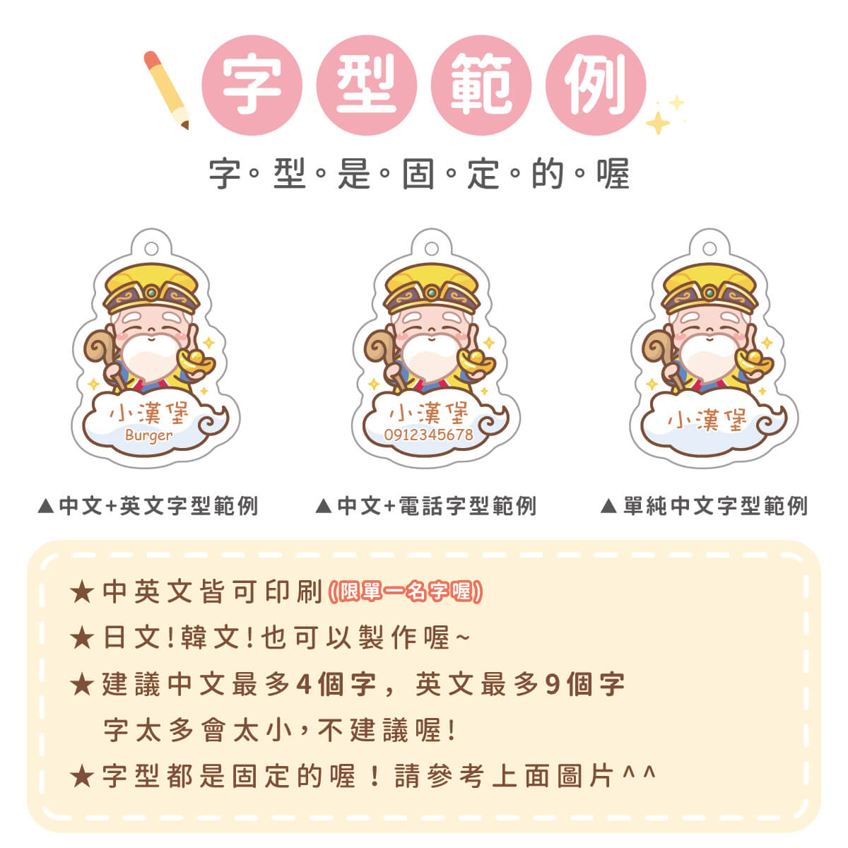 ▶ 字型都是固定的喔,如果想要中規中矩請備註要標楷體喔
