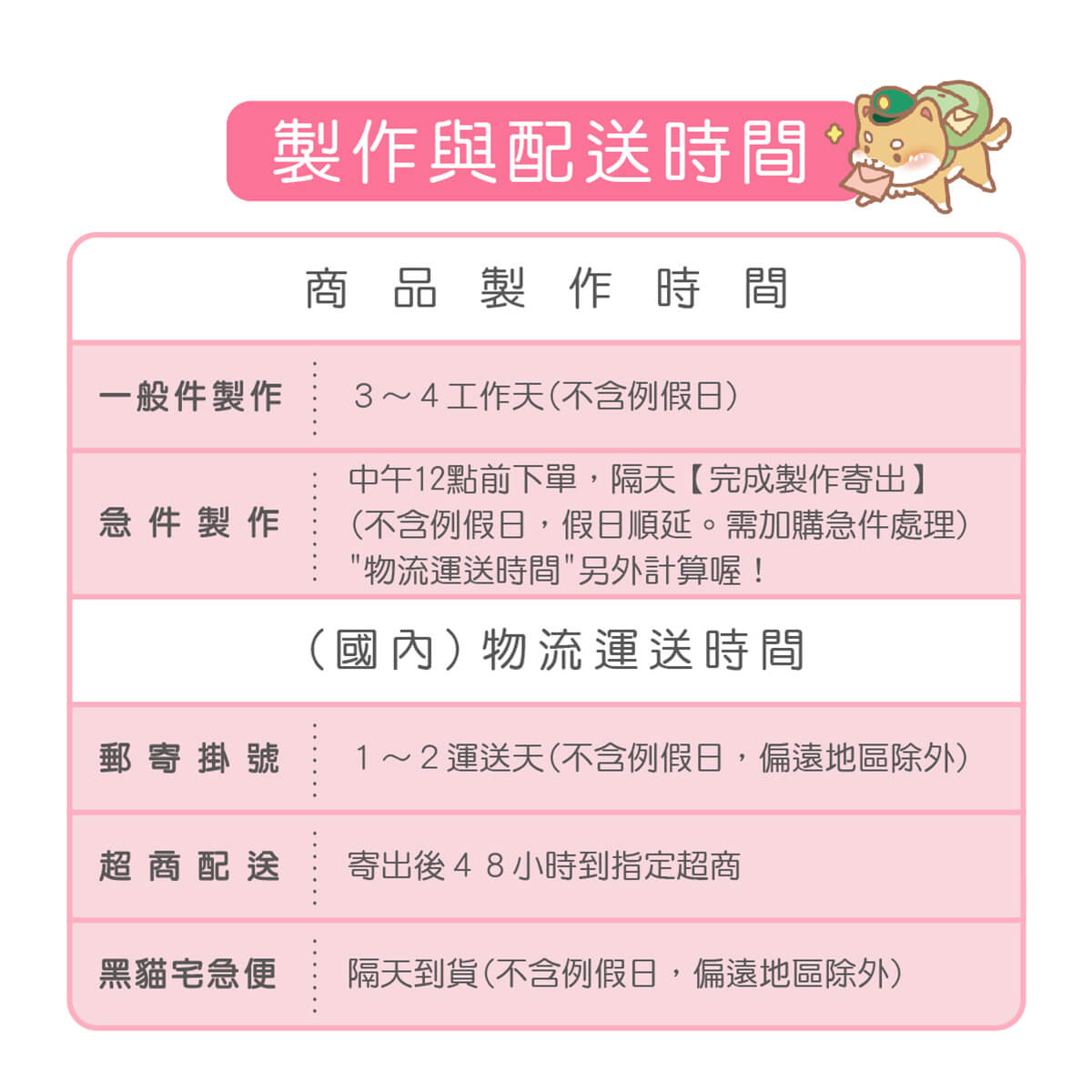 ▶ 製作天數約3-4個工作天,提早做好會提早寄出