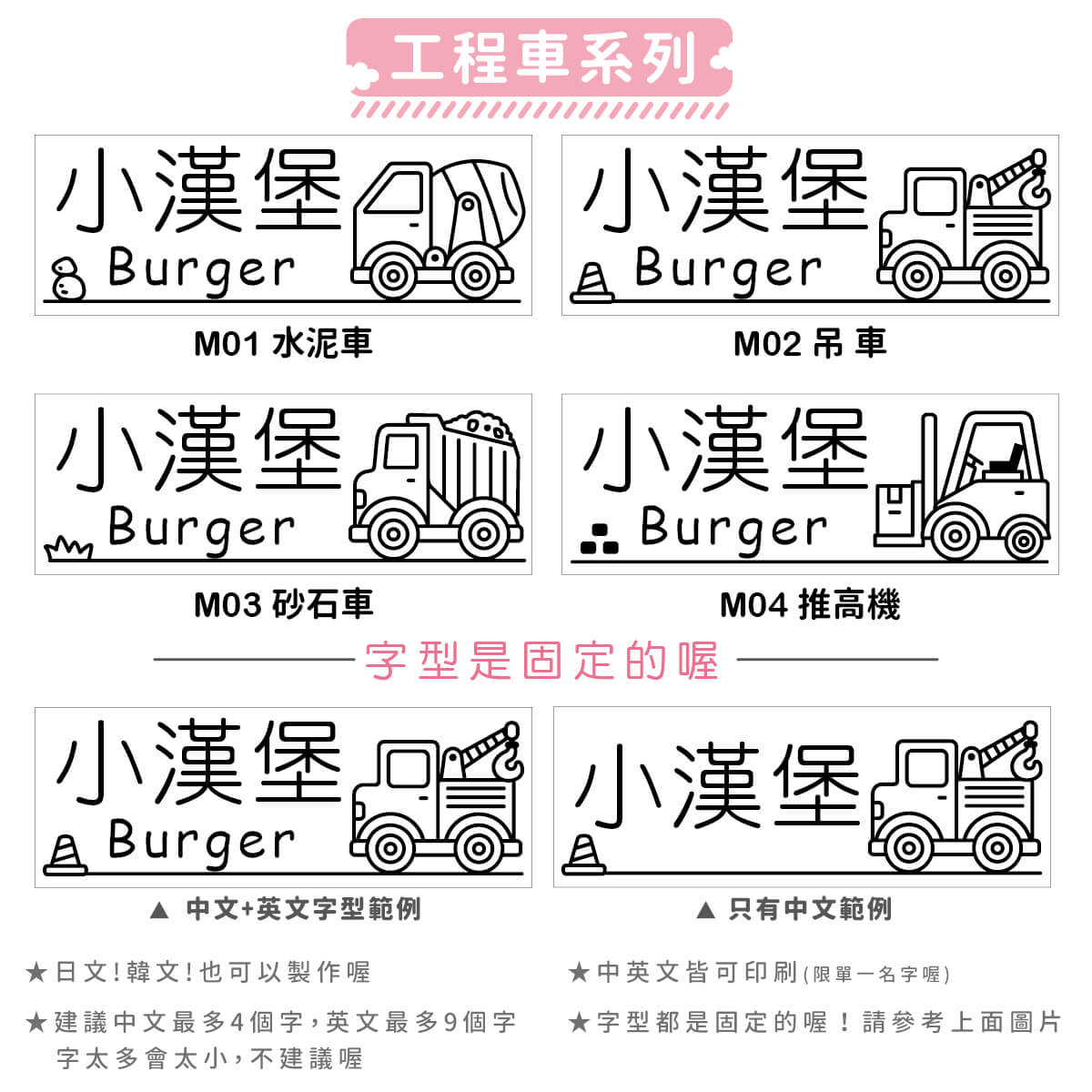 ※可中英文一起,單純中文、英文也可以。