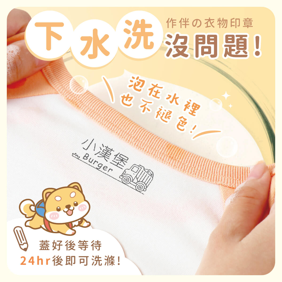 5. 印章蓋印上衣物後需等待24小時後才能下水洗滌喔
