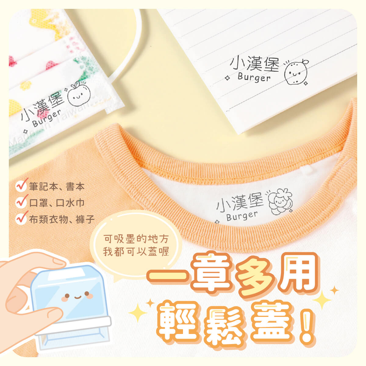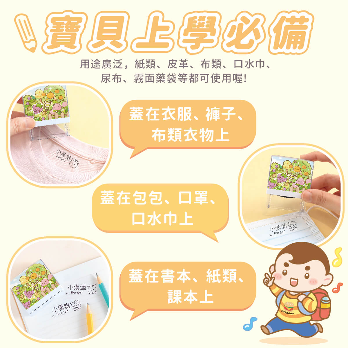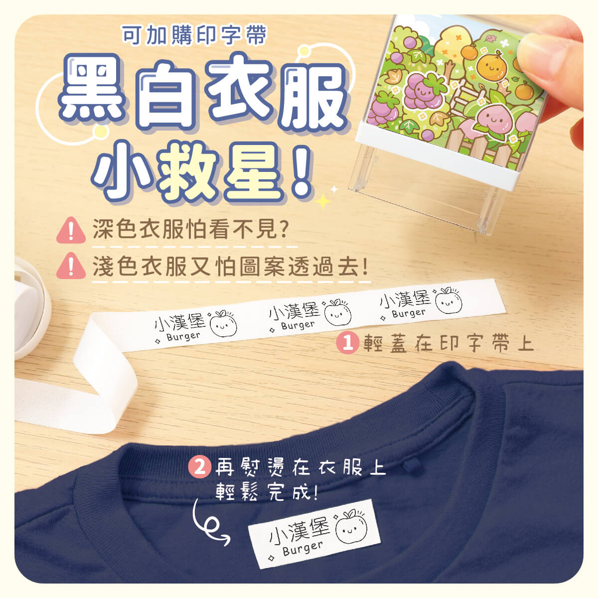 4. 印章墨水是黑色的,蓋印在淺色衣物有透印的可能,若是介意可使用印字帶燙印喔