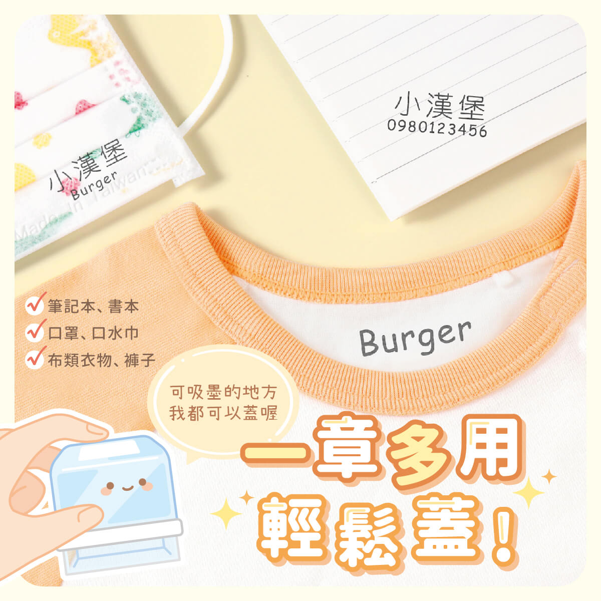 4. 印章墨水是黑色的,蓋印在淺色衣物有透印的可能,若是介意可使用印字帶燙印喔